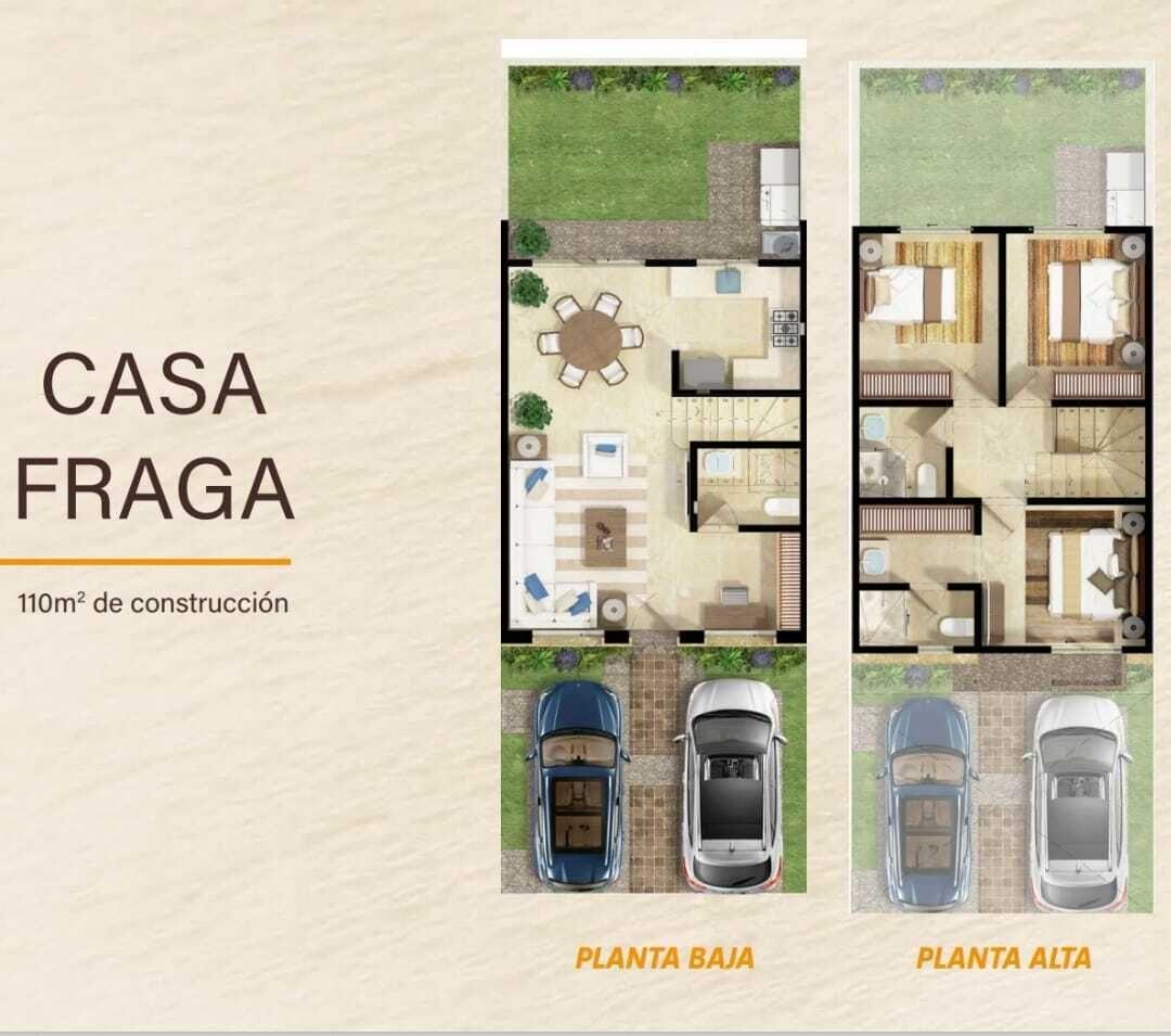 Estas casas de 2 plantas han sido diseñadas pensando en el confort y la funcionalidad. Sus amplias recámaras brindan privacidad y espacio para toda la familia. La recámara principal cuenta con baño en suite y vestidor.